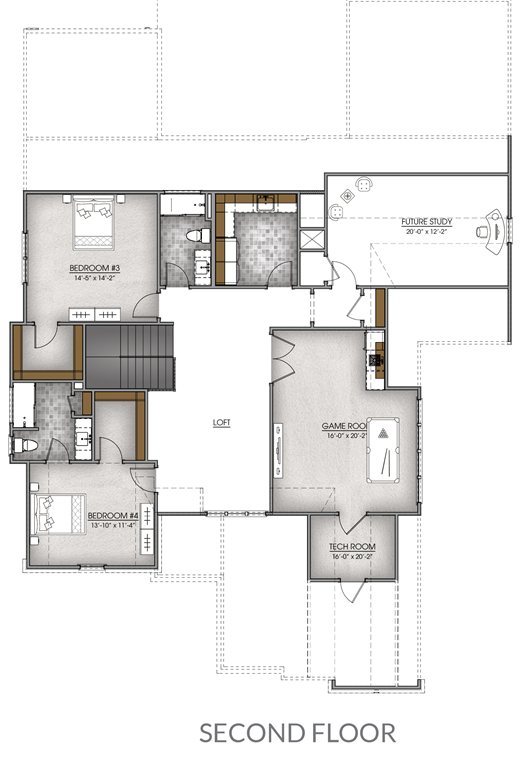 The Turner offers a flexible 3,769 to 4,027 square feet of comfortable, thoughtfully designed living space with 4 bedrooms, 4 full bathrooms, and a 3-car garage—perfect for modern families seeking style and functionality. A future study takes the space from 3,769 sq ft to 4,027 sq ft.