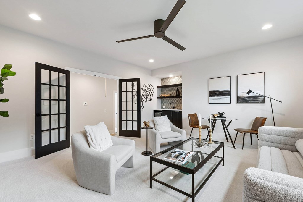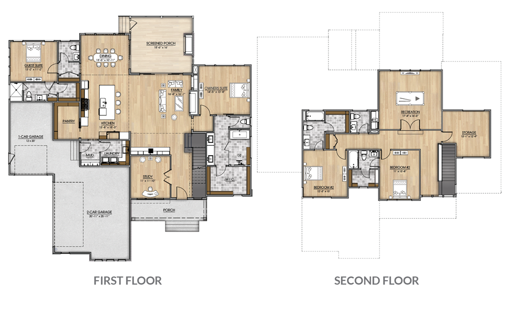 The first-floor owner’s suite offers a relaxing retreat with a spa-like bath and walk-in closet, while a private guest suite on the main level adds convenience and privacy for visitors. Upstairs, you'll find two additional bedrooms—each with its own full bath—alongside a spacious rec room and finished storage area, ideal for games, hobbies, or relaxing.