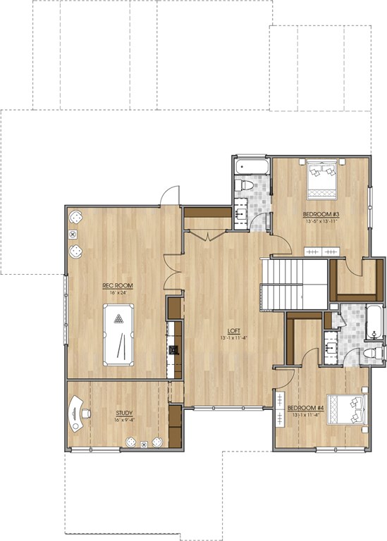 Upstairs, you’ll find a bright and open study, a spacious recreation room, and two additional bedrooms, each with access to full bathrooms. The second floor also features abundant storage, perfect for keeping your home tidy and functional.