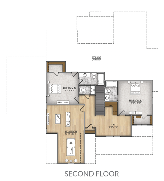 Upstairs, you’ll find two additional bedrooms, each with its own dedicated bathroom, offering ideal accommodations for family or guests. A spacious recreation room provides endless possibilities—whether it’s a media room, playroom, or home gym—while the loft adds even more versatile living space. A convenient powder room and abundant storage throughout complete the upper level.