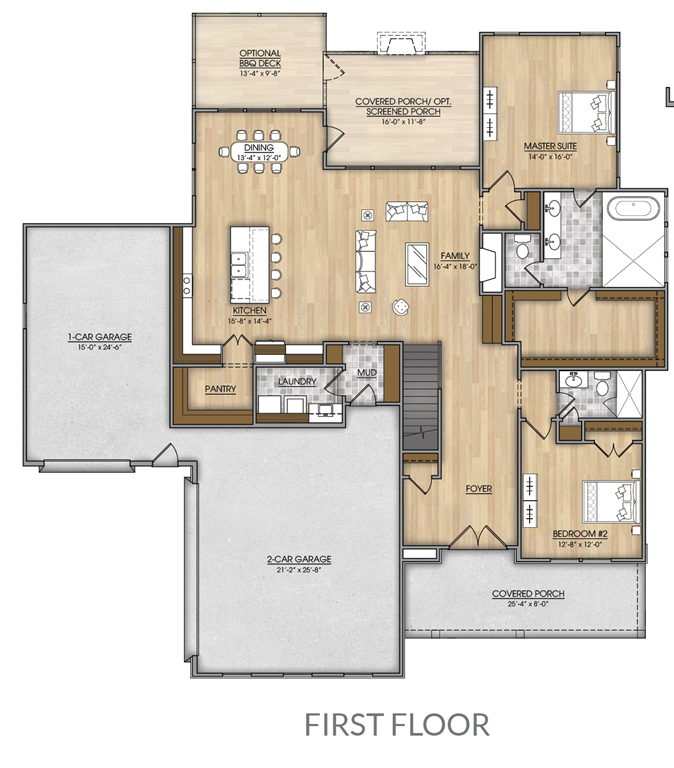 Just off the main living area, a covered rear porch extends your living space outdoors, with options to add a screened porch or BBQ deck—perfect for enjoying every season.